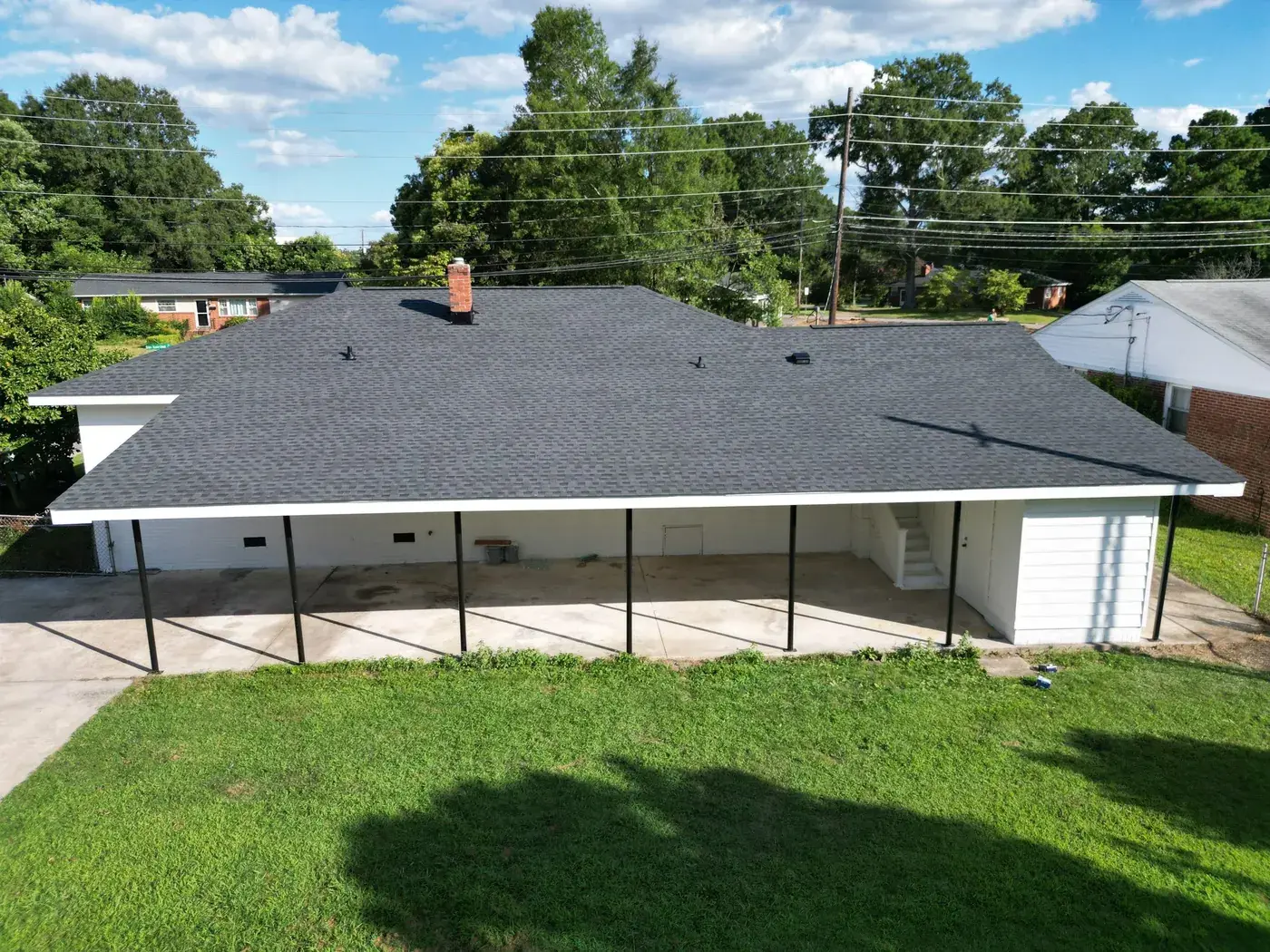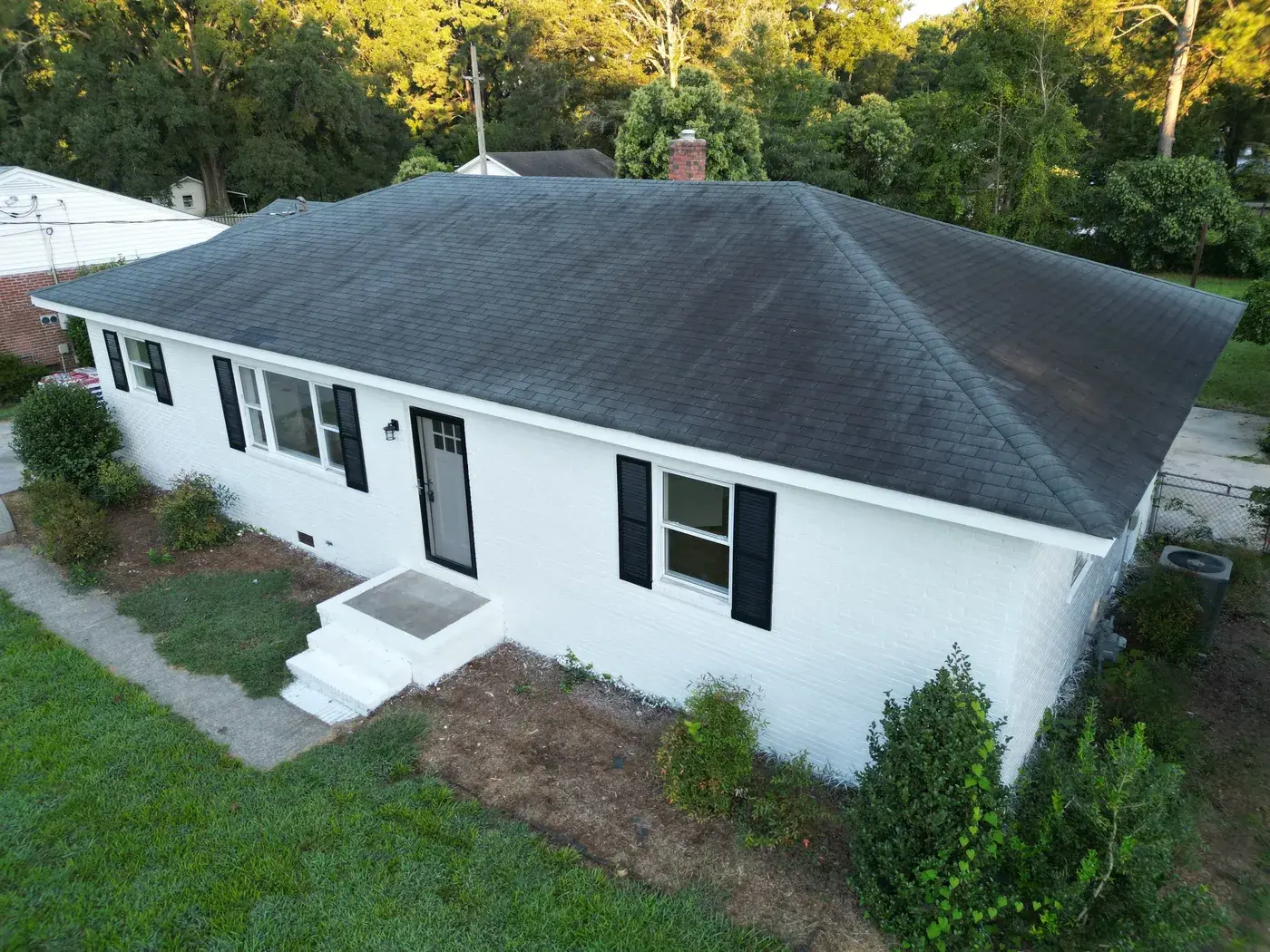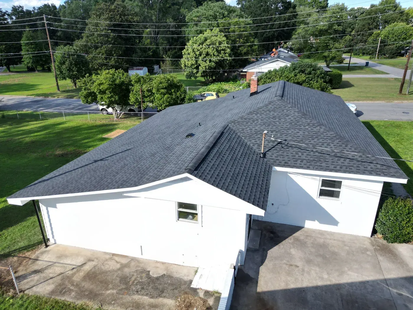 Duke Homestead Rd in Durham is a clean painted-brick ranch in white with black shutters, the kind of straightforward home where every detail of the new roof is visible from the curb. The 32 squares ran across a simple gable, but with an L-shaped footprint there was a key valley where the wing meets the main, and we put time into the underlayment there. We installed GAF Timberline HDZ in Charcoal. The dark shingle reads sharp against the white painted brick and gives this classic ranch a finished, deliberate top. Total project: $13,000, completed August 2025.