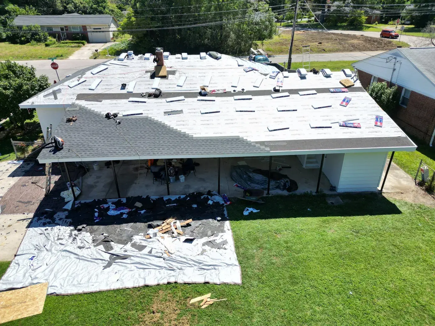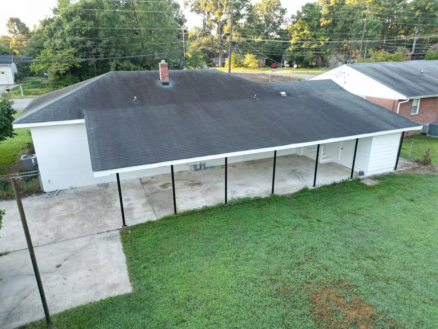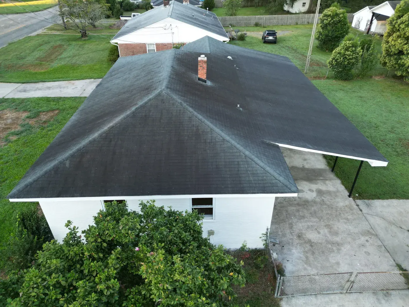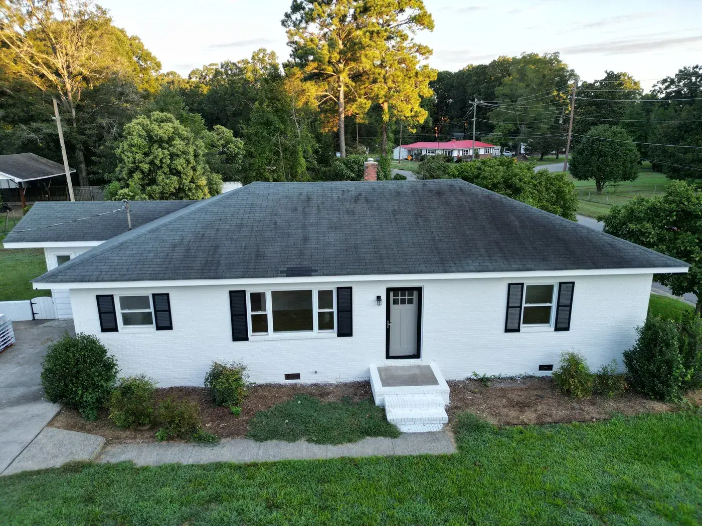 Duke Homestead Rd in Durham is a clean painted-brick ranch in white with black shutters, the kind of straightforward home where every detail of the new roof is visible from the curb. The 32 squares ran across a simple gable, but with an L-shaped footprint there was a key valley where the wing meets the main, and we put time into the underlayment there. We installed GAF Timberline HDZ in Charcoal. The dark shingle reads sharp against the white painted brick and gives this classic ranch a finished, deliberate top. Total project: $13,000, completed August 2025.