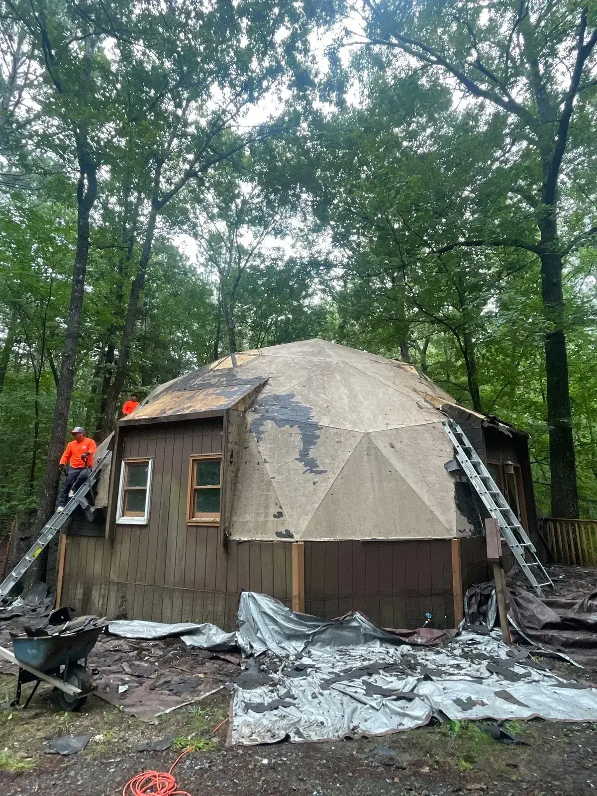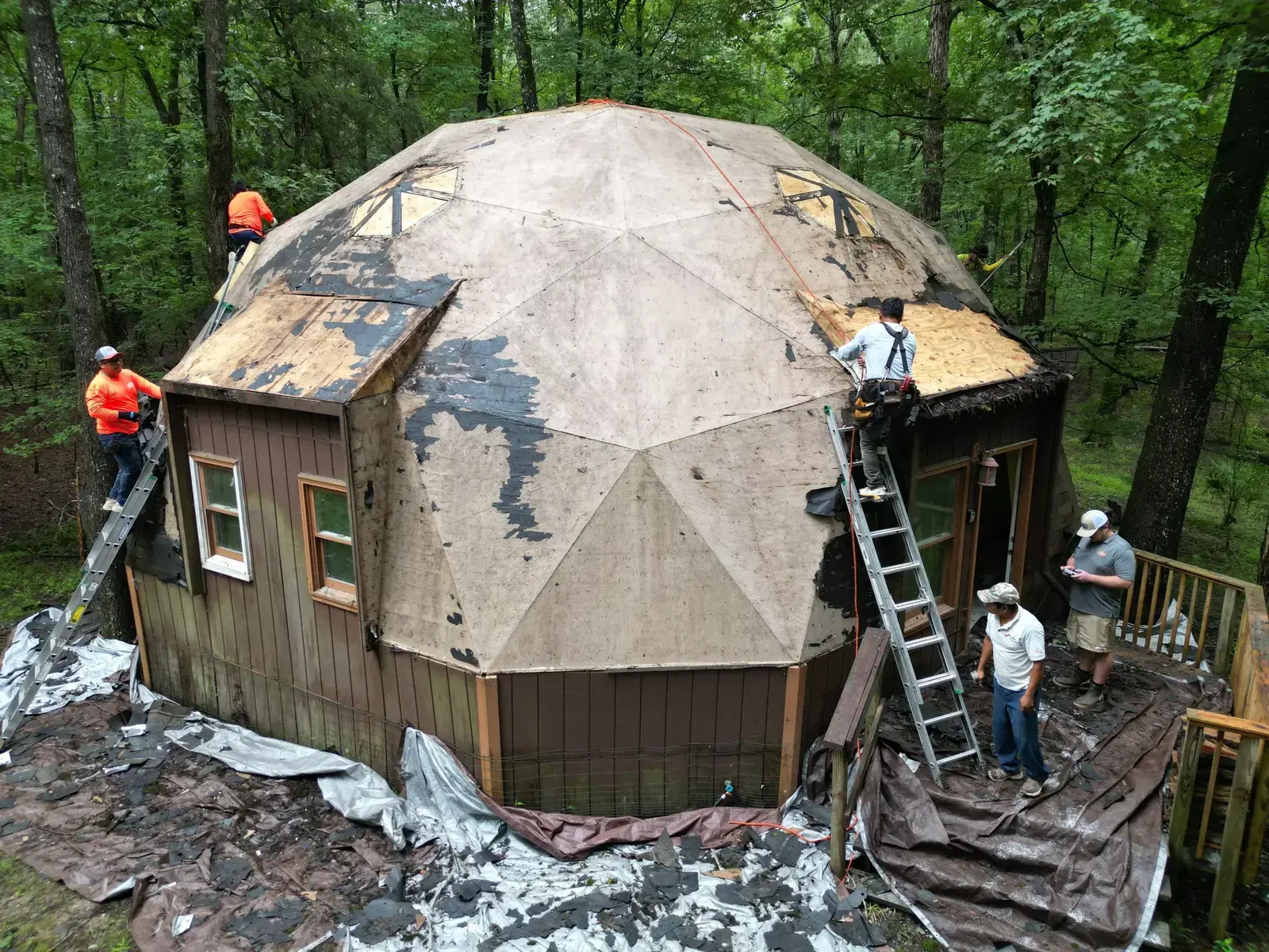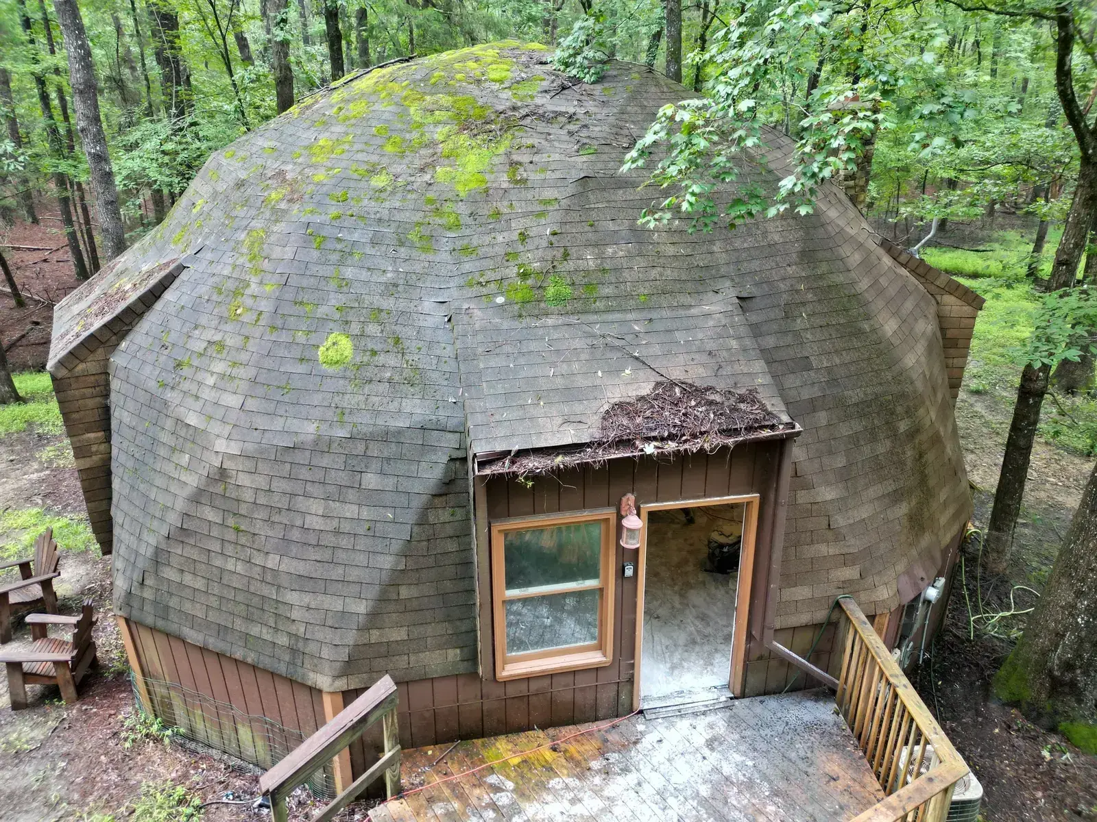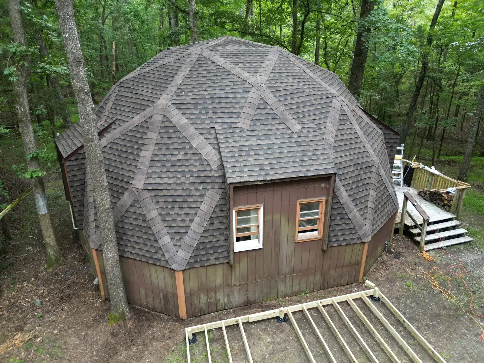 Hawk Ridge Rd in Chapel Hill was unlike anything else in our project log, a geodesic dome home with hundreds of triangular roof facets needing precise shingle work across the entire spherical surface. There is no comparing this to a standard pitched roof. Each panel had to be cut and fit individually, and the seams between facets demanded a level of detail you only learn through patience. We installed 33 squares of GAF Timberline Ultra HDZ in Barkwood, the warm earth tone settling beautifully into the wooded surroundings. The dome now reads as one continuous, weather-tight surface, and the home stands as one of the most distinctive projects we have ever completed. Total project: $11,925, completed August 2025.