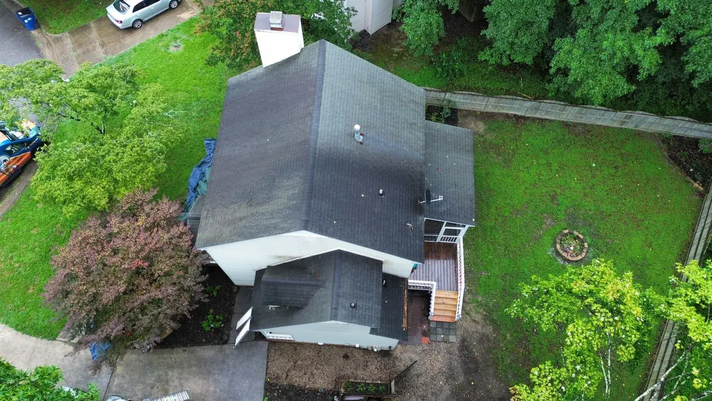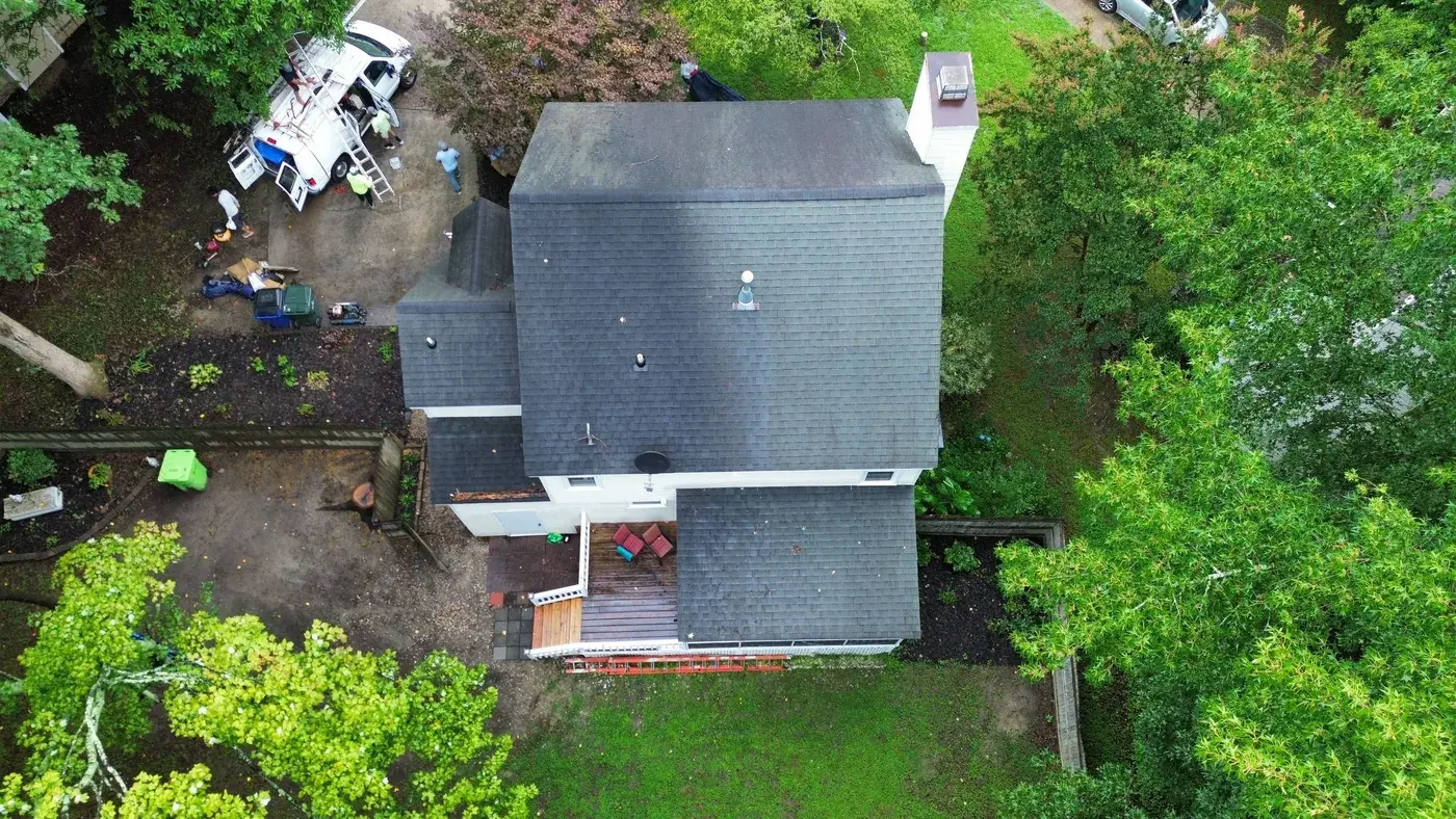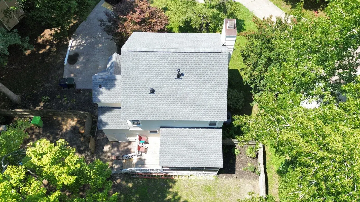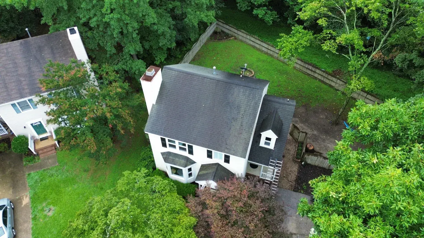 Kempsford Pl in Raleigh is a compact two-story tucked into a wooded lot, with a charming bay window projecting from the front and a quiet covered entry beside it. The 20 squares here was a tighter scope, which let us focus on a clean finish across the simple front-facing gable and around the bay tie-in. We installed GAF Timberline HDZ in Pewter Gray. The cool tone reads sharply against the white siding and gives a smaller home the same crisp finish a larger one would get. Total project: $8,415, completed July 2025.