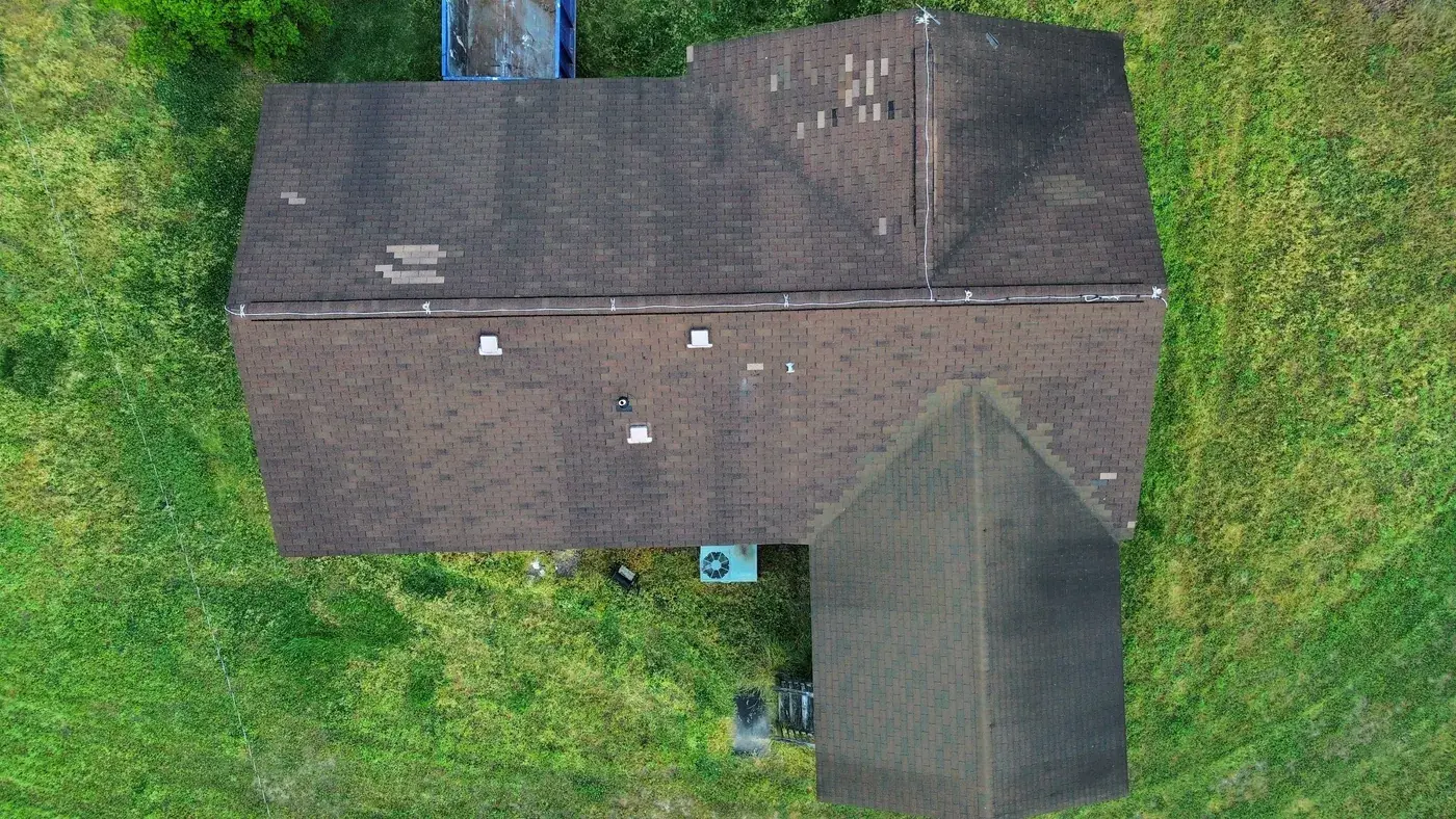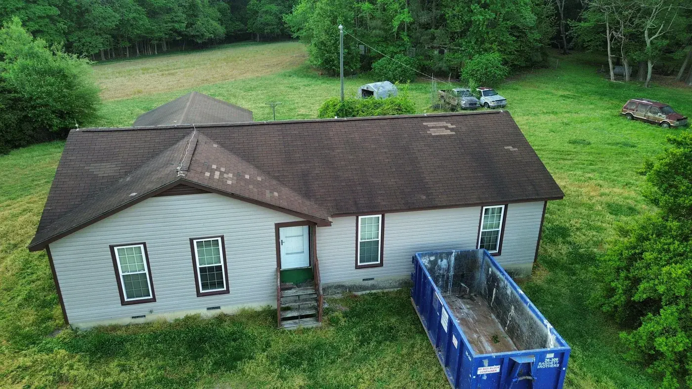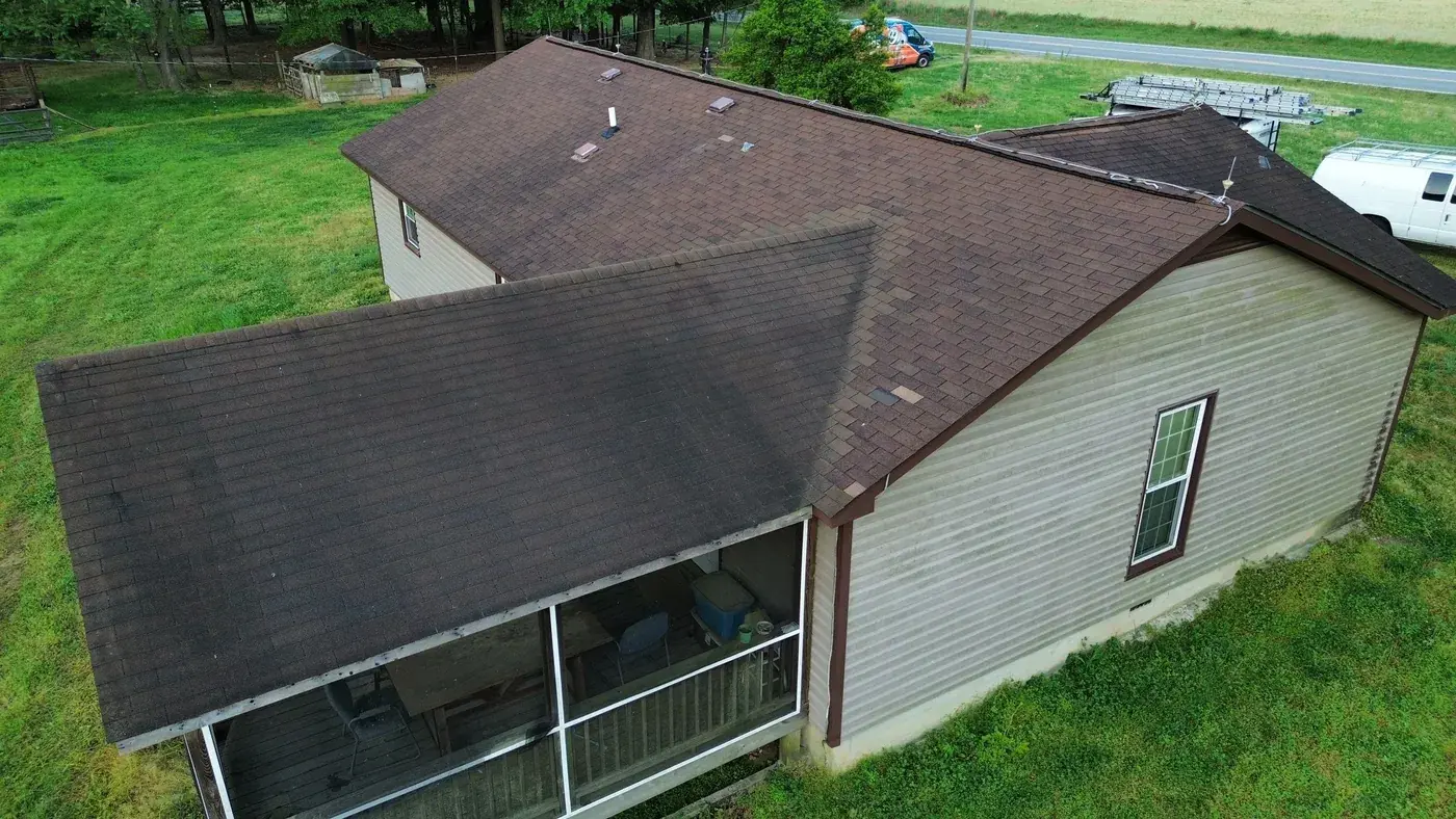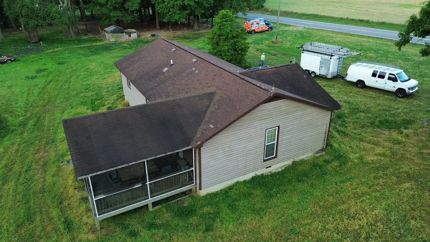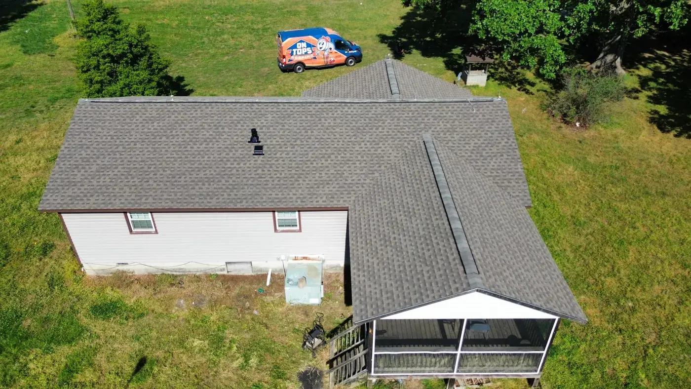 Lake Wheeler Rd in Fuquay-Varina is a single-story home in white siding with a cross-gable footprint and a screened porch tucked along the right side. With the two perpendicular wings meeting at a center valley plus the porch tie-in to handle, the prep on this 27-square job took its time on the transitions. We installed GAF Timberline HDZ in Weathered Wood. The warm tone settles softly against the white siding and the open green lawn around the home, giving the property a balanced new top. Total project: $11,975, completed April 2026.