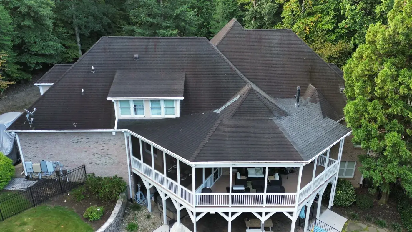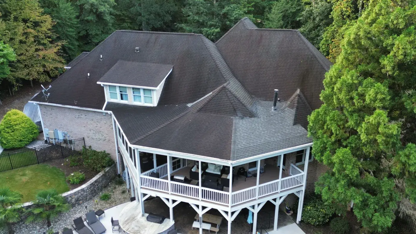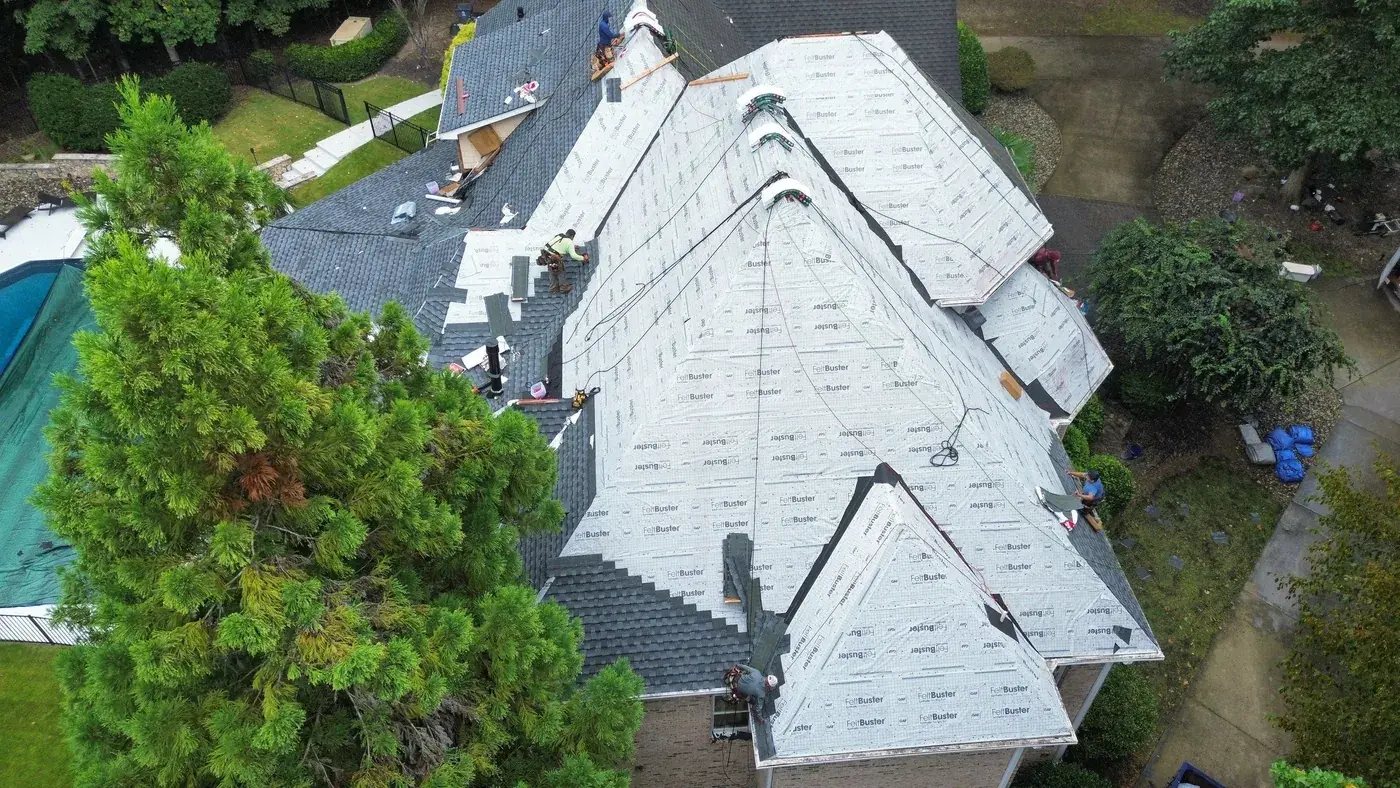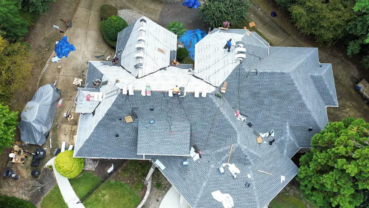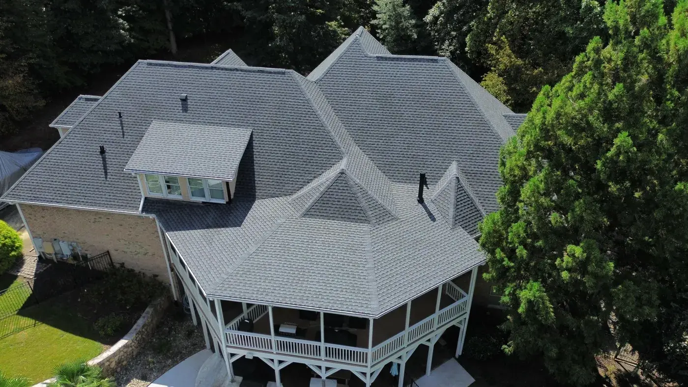 Vista Dell Lago Ln in Wake Forest is one of the largest projects in our log, an 87-square install across an estate-scale home with a deeply complex hipped-and-gabled roof, multiple intersecting planes, and a backyard pool. A roof this large takes a coordinated crew and a methodical approach to every transition. We installed GAF Timberline Ultra HDZ in Pewter Gray. The cool gray reads beautifully across the manicured property and gives this estate the kind of finished crown its scale demands. Total project: $35,000, completed September 2025.